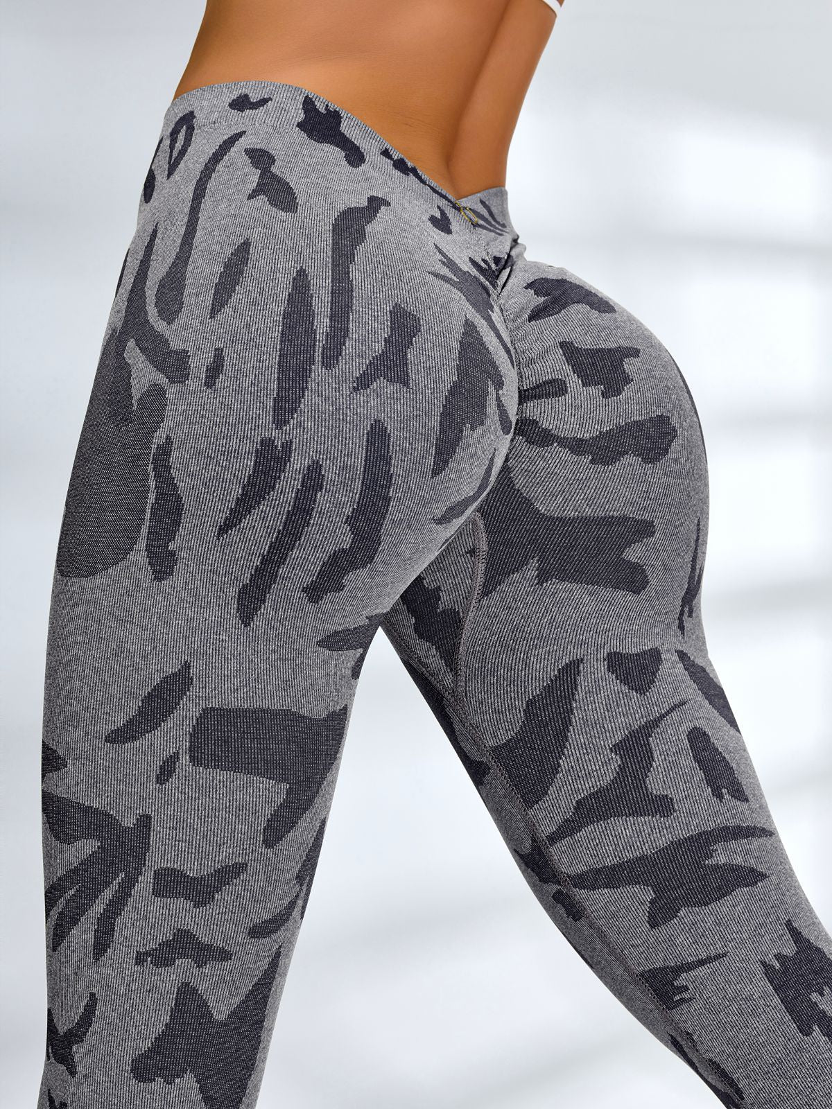 ZASUWA Female Sexy Camouflage Deep V Back Scrunch Bum Leggings