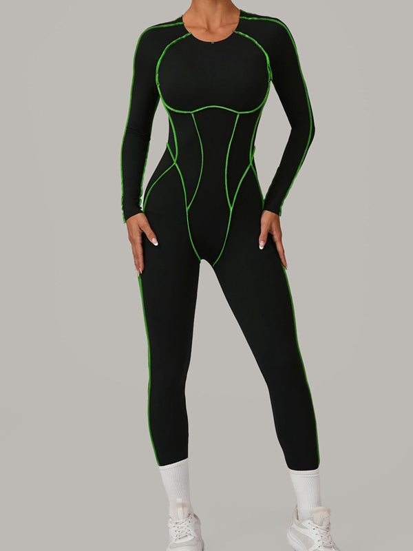 ZASUWA Female Sexy Backless Contrast Color Stripes Jumpsuit