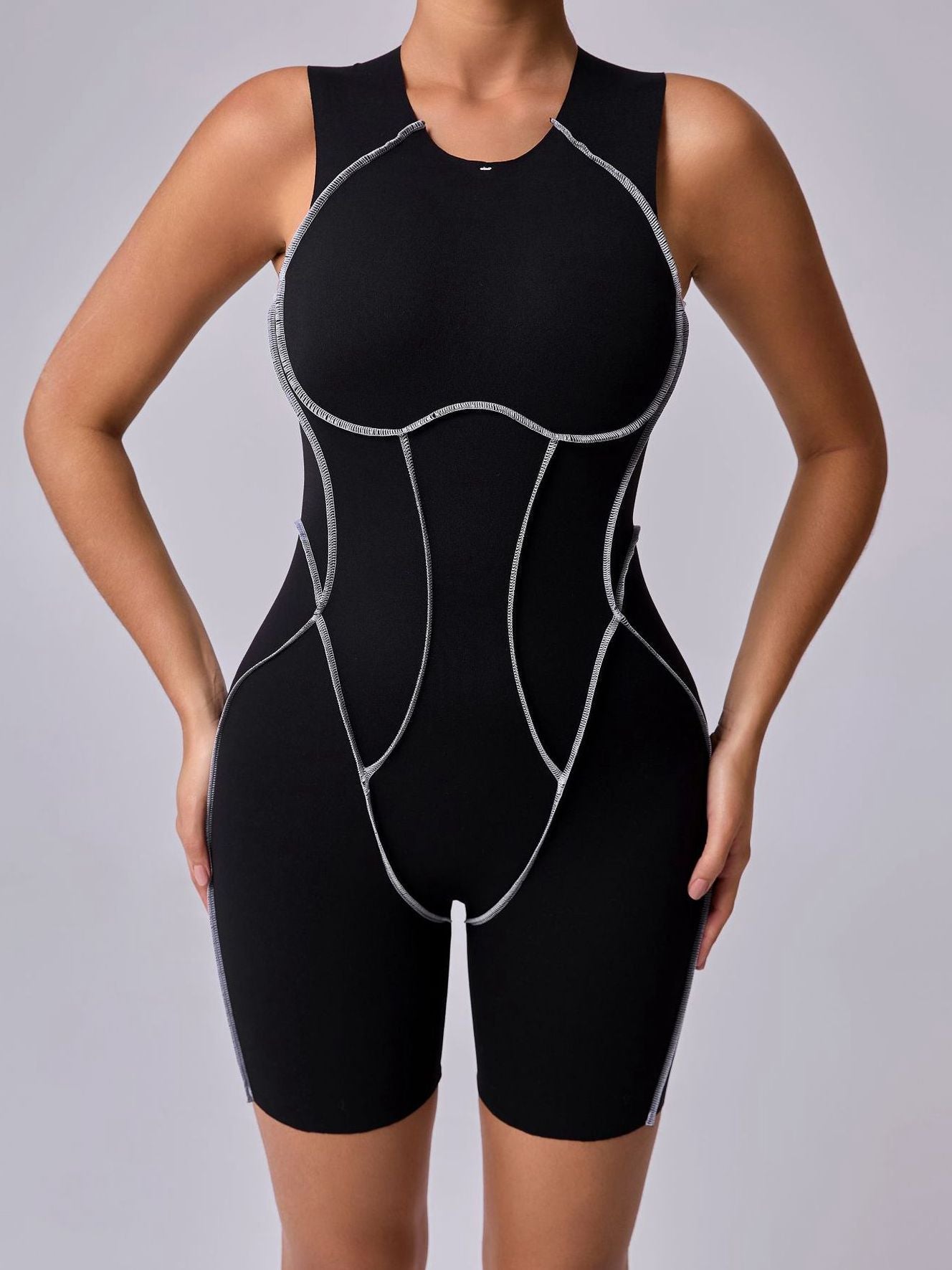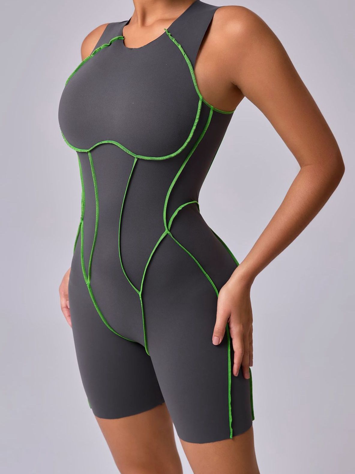 ZASUWA Female Hollow Out Backless Contrast Color Stripes Romper