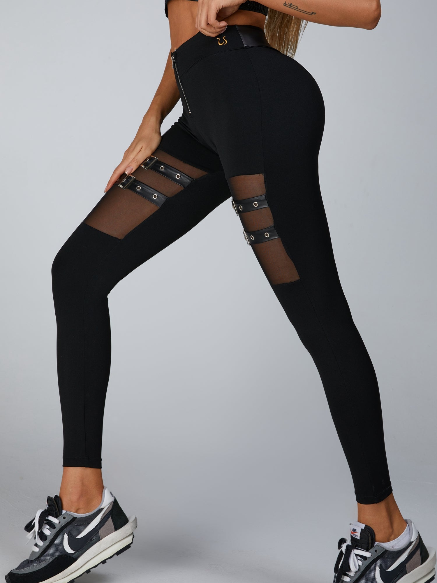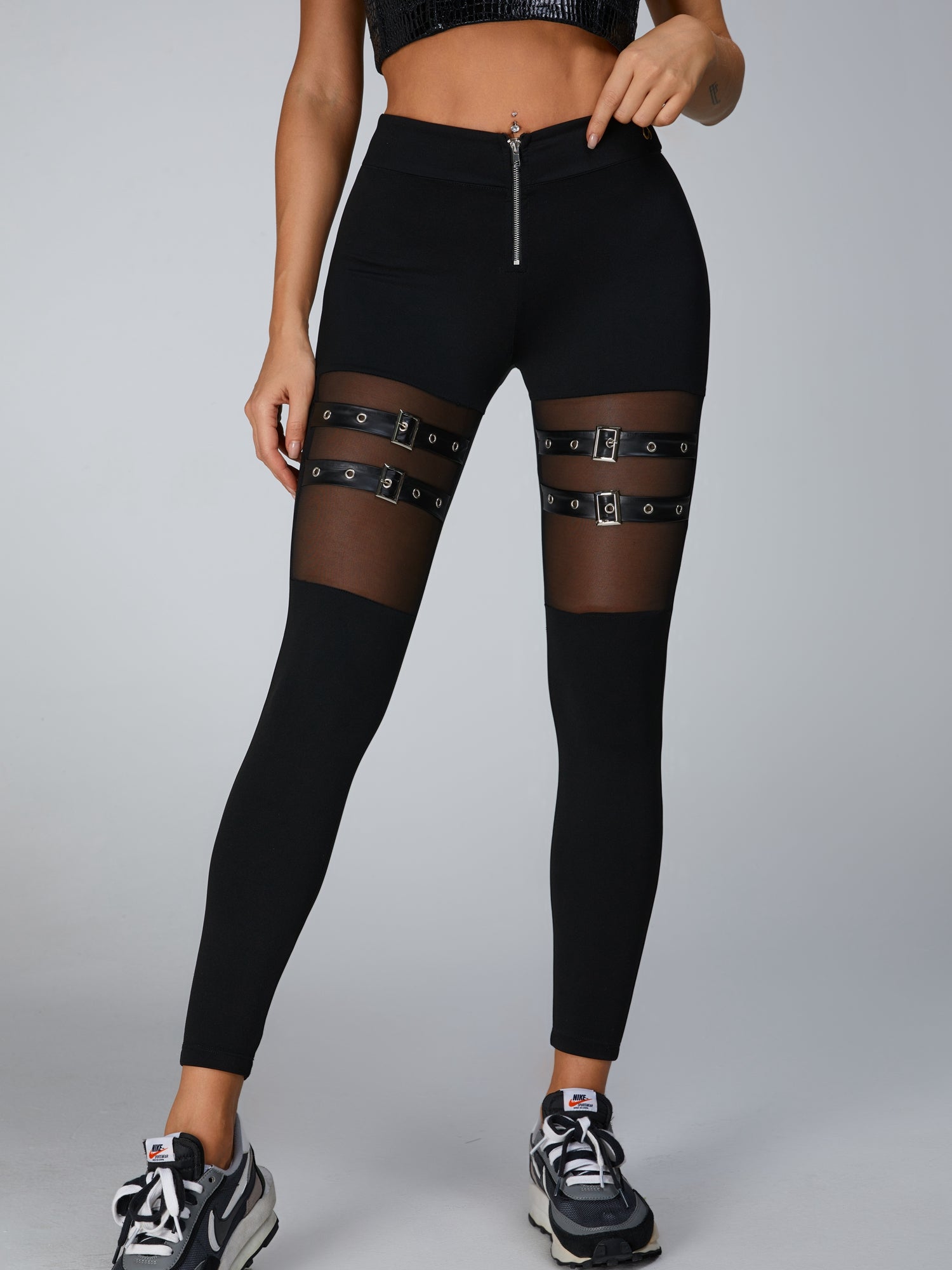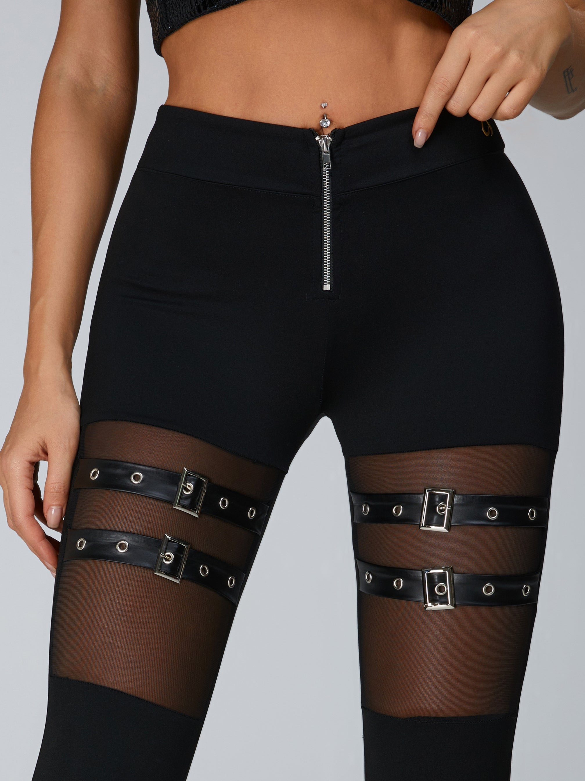 🖤ZASUWA Female Buttons Cutout Mesh Zipper Faux Leather Corset Tracksuit
