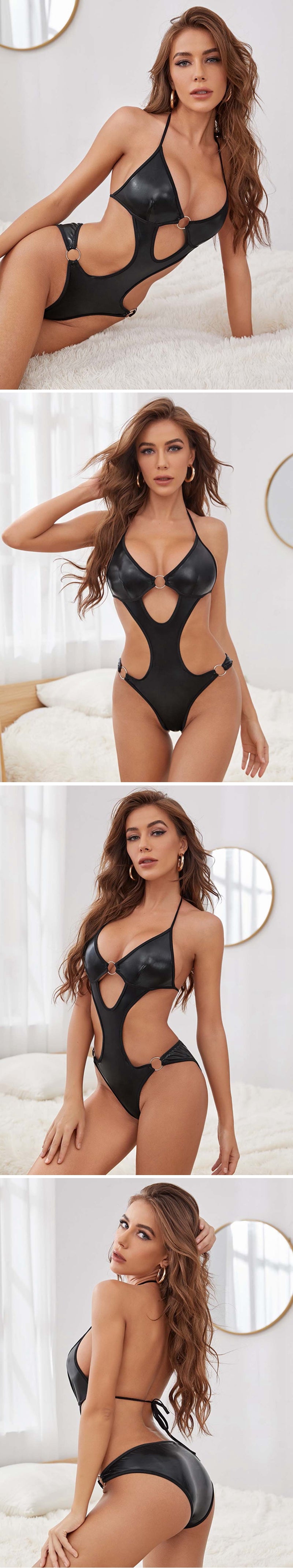 ZASUWA Female Hollow Out Tailoring PU Faux Leather One Piece