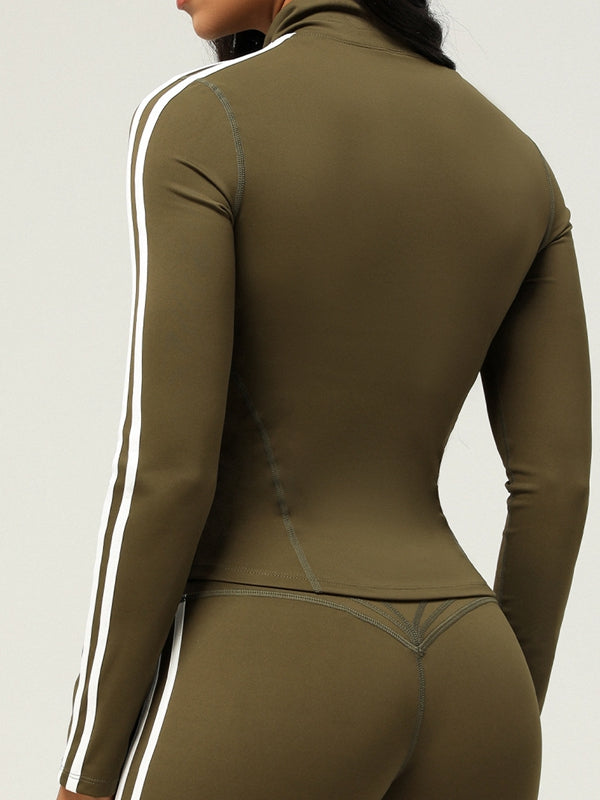 ZASUWA Female Zipper Contrast Color Stripes Pocket Jacket